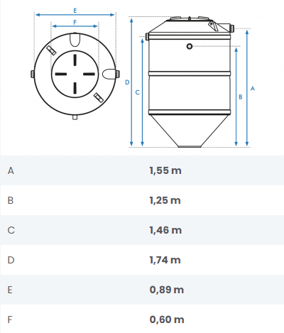 – Sistema 2 em 1: A Fossa Séptica Fortlev é composta por uma Fossa e um Filtro de Sólidos unificados em fluxo ascendente.